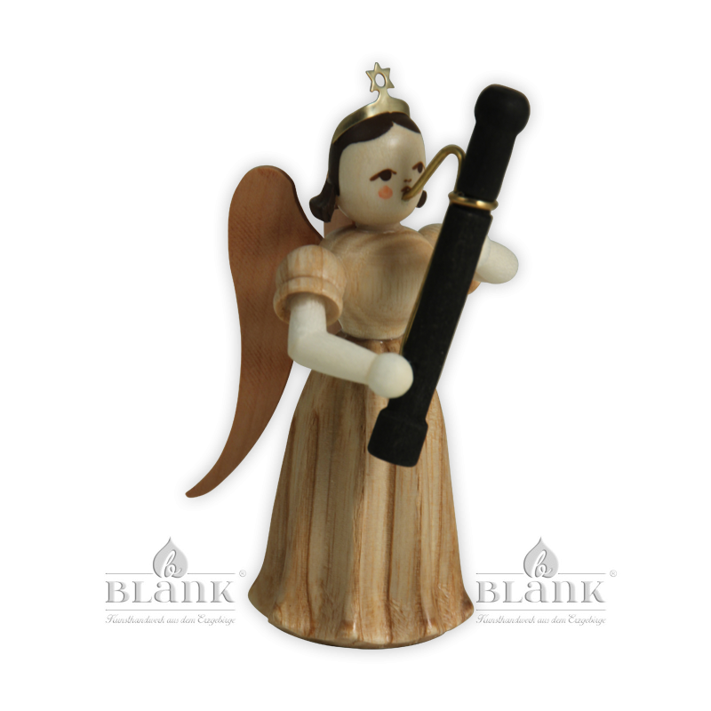 Dieser handgefertigte Faltenlangrockengel aus Naturholz wirkt mit seinem langen Gewand besonders festlich. Die Maserung auf dem Kleid kommt naturbedingt bei jedem Engel anders zur Geltung und macht so jede Figur zu einem individuellen Einzelstück.Der Engel spielt konzentriert auf einem Fagott und begleitet damit das große Engelorchester aus dem Hause BLANK, das in aufwendiger Handarbeit mit viel Liebe zu Detail direkt im Erzgebirge entsteht.