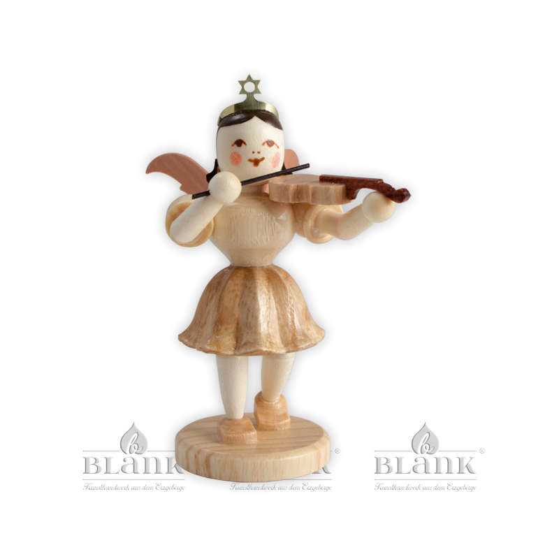 This little angel with the unique pleated skirt from BLANK Kunsthandwerk plays with concentration on his filigree violin. He accompanies the large angel orchestra, which is elaborately handcrafted in our angel workshop in the Erzgebirge. The natural-coloured figure is made from various local woods and is put together in approx. 135 steps with great attention to detail. Finally, painters give the angel a friendly expression so that he can enchant everyone alone or in an ensemble.