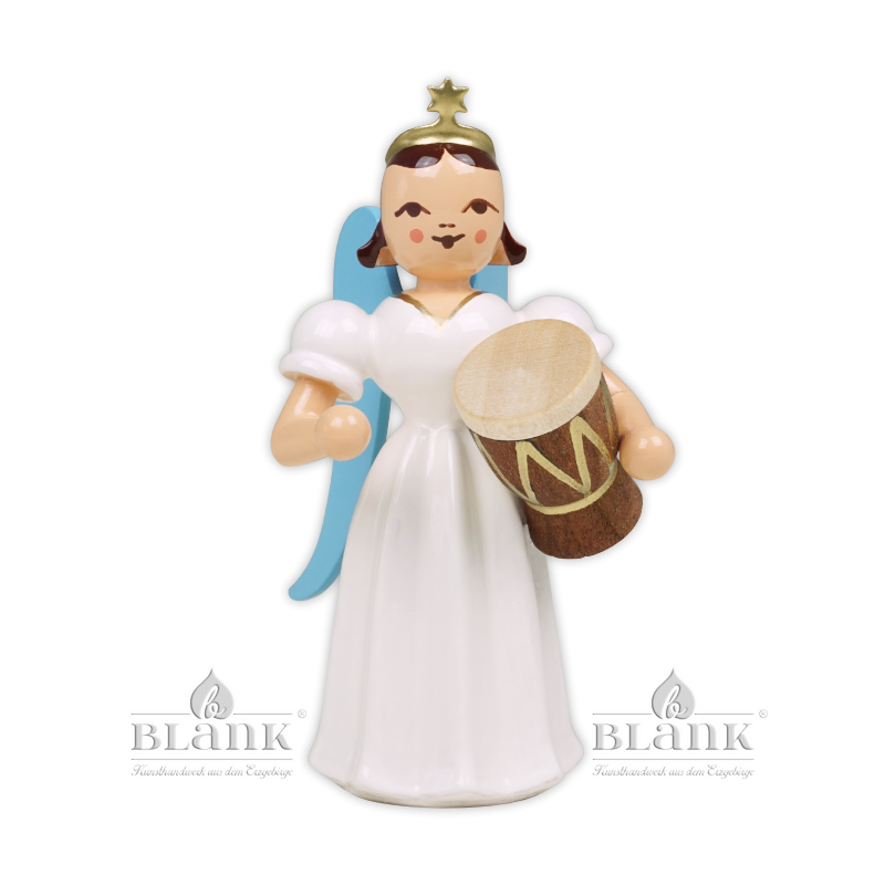 This hand-painted angel musician with a long pleated skirt plays a djembe. The drum, which comes from West Africa, is struck with one hand and offers a wide range of sounds. The figure is made entirely by hand in our angel workshops in Grünhainichen and is made of local wood. Both the instrument and the long-robed angel were lovingly finished by our painters with fine brushwork. Our products are all certified: "Echt Erzgebirge. Holzkunst mit Herz®".