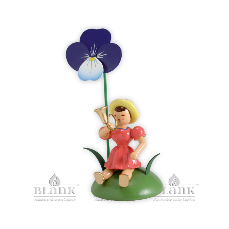 A pansy grows right next to it announcing the approaching spring. Figure and flower are elaborately hand-painted in our angel workshop in Grünhainichen and decorated with great attention to detail.
