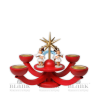 Unter einem goldenen Stern haben sich vier farbige Faltenrockengel® versammelt, um gemeinsam ein Weihnachtslied anzustimmen. Zum Fest tragen sie ihre hübschen, weißen Faltenröckchen, die mit einem goldenen Saum versehen sind. Die Figuren stehen auf einem kleinen Teller im Zentrum des roten Leuchters, von dem vier elegant geschwungene Kerzenhalter ausgehen. In die Halterungen passen vier Teelichter, die nicht nur zur Weihnachtszeit angenehmes Licht verbreiten. Das Set ist in aufwendiger Handarbeit von erfahrenen Fachleuten in unseren Engelwerkstätten in Grünhainichen entstanden und wurde ausschließlich aus heimischen Hölzern gefertigt. Es ist ein ausgezeichnetes Qualitätsprodukt aus dem Hause BLANK mit dem Siegel „Echt Erzgebirge.Holzkunst mit Herz®“