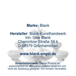 BLANK Kunsthandwerk ist ein traditionsreiches Familienunternehmen aus Grünhainichen im Erzgebirge, das seit 1955 filigrane Faltenrockengel und hochwertige Weihnachtsdekorationen herstellt. Neben Pyramiden, Schwibbögen, Nussknackern und Rauchfiguren werden auch Blumenkinder und Osterhasen in aufwendiger Handarbeit gefertigt. Dafür wurden die Produkte des Herstellers vom Verband Erzgebirgischer Kunsthandwerker und Spielzeughersteller e. V. mit dem Zertifikat "Echt Erzgebirge. Holzkunst mit Herz®" ausgezeichnet.