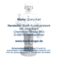 Hölzerne Rauchfiguren, die mit duftenden Räucherkerzen bestückt werden, gehören seit vielen Jahrzehnten zum weihnachtlichen Brauchtum im Erzgebirge. Dabei sind die Figuren nicht nur nützlicher Windschutz für die brennenden Räucherkerzen, sondern auch ein ums andere Mal reale Zeugnisse erzgebirgischer Handwerkskunst, die die Erfahrung und das Wissen vieler Generationen von Holzspielzeugmachern widerspiegeln. Viele Figuren repräsentieren Beobachtungen aus dem alltäglichen Leben der Erzgebirger und laden dank Witz und Kreativität ihrer Erbauer zum Entdecken und Geschichtenerzählen ein. Oft zeigen die Figuren bestimmte Berufsgruppen, oder sollen auffällige Charakterzüge und Gewohnheiten verbildlichen. In jedem Fall sind sie eine willkommene Geschenkidee für jede Gelegenheit.