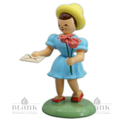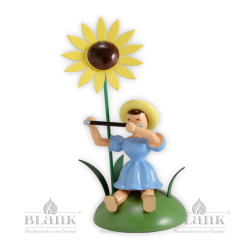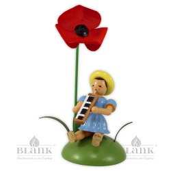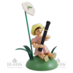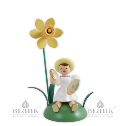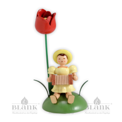Auf einem grünen Hügel, zwischen den ersten Grashalmen, hat es sich ein kleines Blumenkind bequem gemacht. Es hat sein schickes rotes Faltenröckchen ausgebreitet und spielt auf einem Jagdhorn, um die Sonnenstrahlen im Frühling zu begrüßen. Direkt neben ihm wächst ein Stiefmütterchen, dessen feine blau-weiße Blüte schon das nahende Frühjahr ankündigt. Figur und Blüte werden in unserer Engelwerkstatt in Grünhainichen aufwendig handbemalt und mit viel Liebe zum Detail verziert.