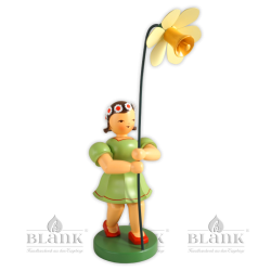Dieses freundliche Blumenkind hat sich schick gemacht, um einen besonderen Blumengruß zu überreichen. Es trägt sein schönstes weißes Faltenröckchen aus handbearbeitetem Naturholz. In den Händen trägt die Figur einen fein gearbeiteten Klee, der - wie die Figur selbst - mit viel Liebe zum Detail in erzgebirgischer Holzkunsttradition in unserer Werkstatt in Grünhainichen entstanden ist. Erfreuen Sie sich an diesem kleinen Blumenkind oder verschenken Sie unvergängliche Blumengrüße.