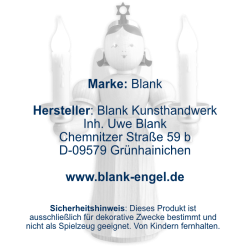 Die Dekoengel von BLANK Kunsthandwerk mit ihren 22 cm Größe sind wirklich ein Blickfang. Sie werden in unserer Engelwerkstatt vollständig von Hand gefertigt, liebevoll bemalt, und sind dank der schönen Holzmaserung auf ihrem Gewand allesamt Unikate. Dieser Engel trägt freudig zwei elektrische Kerzen vor sich und erhellt damit festlich jede Dekoration. Die beiden Flammkerzen (/GL 005) zu 12V 3W sind enthalten.