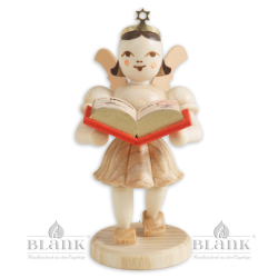 Exklusiverzeugnis für den Fachhandelsring - Teil der Figurengruppe Weihnachtstraum. Die Weihnachtszeit ist die Zeit der Märchen und Geschichten. Dies dachte sich auch dieser kleine Engel und nahm sein dickes, rotes Märchenbuch zur Hand, in dem vom Ursprung der Faltenrockengel und dem kleinen Engelchen "Firlipuzzli" berichtet wird, das Vorbild für die Engelmusikanten war. Die Figur gehört zu einer Gruppe von Exklusivengeln für den Fachhandelsring, die nicht in jedem Fachgeschäft erhältlich ist. Der Faltenrockengel wird in unserer Engelwerkstatt in liebevoller Handarbeit aus heimischen Hölzern gefertigt und von unseren erfahrenen Mitarbeitern filigran bemalt. Als erzgebirgisches Original trägt er das Siegel "Echt Erzgebirge. Holzkunst mit Herz®".
