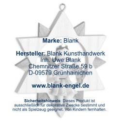 Mitten in einem zweifarbigen Holzstern sitzt ein naturfarbener Kurzrockengel mit Gong und lässt verspielt seine Beinchen baumeln. Mit einem strahlenden Lächeln schwingt er freudig sein messingfarbenes Instrument, das er mit einem zarten Schlägel anstimmt. Dieser himmlische Engel strahlt nicht nur musikalische Freude aus, sondern verkörpert auch das handwerkliche Können unserer erfahrenen Kunsthandwerker. Der Faltenrockengel mit Gong ist nicht nur ein Blickfang als Christbaumschmuck, sondern auch eine einzigartige Dekoration für Fenster oder als besonderer Anhänger für vielfältige Anlässe. Hergestellt in präziser Handarbeit, ist dieses himmlische Stück ein zertifiziertes Original aus unseren Blank-Engelwerkstätten in Grünhainichen. "Echt Erzgebirge. Holzkunst mit Herz®".