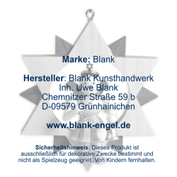 BLANK Kunsthandwerk ist ein traditionsreiches Familienunternehmen aus Grünhainichen im Erzgebirge, das seit 1955 filigrane Faltenrockengel und hochwertige Weihnachtsdekorationen herstellt. Neben Pyramiden, Schwibbögen, Nussknackern und Rauchfiguren werden auch Blumenkinder und Osterhasen in aufwendiger Handarbeit gefertigt. Dafür wurden die Produkte des Herstellers vom Verband Erzgebirgischer Kunsthandwerker und Spielzeughersteller e. V. mit dem Zertifikat "Echt Erzgebirge. Holzkunst mit Herz®" ausgezeichnet.