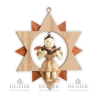 Dieser bezaubernde kleine Faltenrockengel® mit goldenem Sternendiadem sitzt vergnügt auf einem zweifarbig gestalteten Stern und singt liebliche Melodien zu den Noten in seinen Händen. Die Freude ist ihm dabei ins Gesicht geschrieben. Das Kunstwerk wurde in unserer Engelwerkstatt in Handarbeit gefertigt und besteht aus hellem und dunklem Naturholz. Der Stern ist an der Spitze mit einer Metallöse versehen, sodass er sich mit einem Band aufhängen lässt. Die Details des lieblichen Faltenrockengels im Stern sind aufwendig gestaltet. Zieren Sie Ihren Weihnachtsbaum mit diesem filigranen Kunstwerk aus dem Erzgebirge oder hängen Sie die Figur als Dekoration in Ihr Fenster.