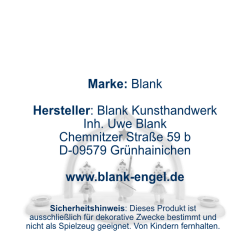 BLANK Kunsthandwerk ist ein traditionsreiches Familienunternehmen aus Grünhainichen im Erzgebirge, das seit 1955 filigrane Faltenrockengel und hochwertige Weihnachtsdekorationen herstellt. Neben Pyramiden, Schwibbögen, Nussknackern und Rauchfiguren werden auch Blumenkinder und Osterhasen in aufwendiger Handarbeit gefertigt. Dafür wurden die Produkte des Herstellers vom Verband Erzgebirgischer Kunsthandwerker und Spielzeughersteller e. V. mit dem Zertifikat "Echt Erzgebirge. Holzkunst mit Herz®" ausgezeichnet.