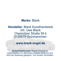 BLANK Kunsthandwerk ist ein traditionsreiches Familienunternehmen aus Grünhainichen im Erzgebirge, das seit 1955 filigrane Faltenrockengel und hochwertige Weihnachtsdekorationen herstellt. Neben Pyramiden, Schwibbögen, Nussknackern und Rauchfiguren werden auch Blumenkinder und Osterhasen in aufwendiger Handarbeit gefertigt. Dafür wurden die Produkte des Herstellers vom Verband Erzgebirgischer Kunsthandwerker und Spielzeughersteller e. V. mit dem Zertifikat "Echt Erzgebirge. Holzkunst mit Herz®" ausgezeichnet.