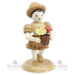 Entstanden in Handarbeit, in unserer traditionsreichen Holzkunstmanufaktur in Grünhainichen im Erzgebirge, besticht diese bezaubernde Miniatur durch eine detailreiche Gestaltung. Die fröhliche Liesel hält eine Kiste mit frischen Früchten und einer Sonnenblume in ihren Händen. Bis auf Gesicht und Haare, welche von unseren Malerinnen liebevoll gemalt wurden, besteht die Figur aus naturfarbenem Holz. Die feinen farblichen Unterschiede entstehen nur durch die Verwendung verschiedener Hölzer, weshalb auch die schöne Maserung noch sichtbar bleibt. Schmücken Sie mit dieser aufwendig gestalteten Faltenrockfigur ganzjährig Ihr Zuhause.