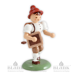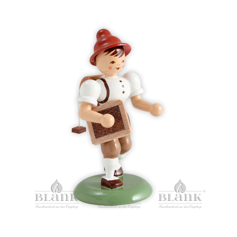 Ausgestattet mit Ranzen und Schiefertafel ist Paulchen geschwind auf dem Weg zu seinem ersten Schultag. Ganz aufgeregt und mit roten Bäckchen ist er schon gespannt, was ihn im Unterricht erwartet. Die in unserer Holzkunstmanufaktur in Grünhainichen im traditionsreichen Erzgebirge gefertigte Figur besteht vollständig aus handbemaltem Holz. Die Verwendung dezenter Farben prägen die Optik der erzgebirgischen Miniatur. Bestimmt wird das fröhliche Paulchen auch Ihr Zuhause bereichern oder einem Schulanfänger eine schöne Erinnerung für seinen großen Tag sein.
