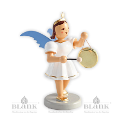 Dieser kleine Kurzrockengel mit dem einzigartigen Faltenröckchen von BLANK Kunsthandwerk schlägt einen goldenen Gong. Er begleitet damit das große Engelorchester, das in aufwendiger Handarbeit in unserer Engelwerkstatt im Erzgebirge entsteht. Die farbige Figur ist aus verschiedenen heimischen Hölzern hergestellt und wird in ca. 150 Arbeitsschritten mit viel Liebe zum Detail zusammengesetzt. Malerinnen verleihen dem Engel schließlich einen freundlichen Ausdruck, verzieren sein Kleid mit einem goldenen Saum und geben ihm goldene Schuhe und blaue Flügel. Lassen Sie sich von diesem erzgebirgischen Original verzaubern.