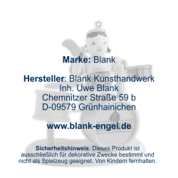 BLANK Kunsthandwerk ist ein traditionsreiches Familienunternehmen aus Grünhainichen im Erzgebirge, das seit 1955 filigrane Faltenrockengel und hochwertige Weihnachtsdekorationen herstellt. Neben Pyramiden, Schwibbögen, Nussknackern und Rauchfiguren werden auch Blumenkinder und Osterhasen in aufwendiger Handarbeit gefertigt. Dafür wurden die Produkte des Herstellers vom Verband Erzgebirgischer Kunsthandwerker und Spielzeughersteller e. V. mit dem Zertifikat "Echt Erzgebirge. Holzkunst mit Herz®" ausgezeichnet.