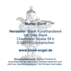 BLANK Kunsthandwerk ist ein traditionsreiches Familienunternehmen aus Grünhainichen im Erzgebirge, das seit 1955 filigrane Faltenrockengel und hochwertige Weihnachtsdekorationen herstellt. Neben Pyramiden, Schwibbögen, Nussknackern und Rauchfiguren werden auch Blumenkinder und Osterhasen in aufwendiger Handarbeit gefertigt. Dafür wurden die Produkte des Herstellers vom Verband Erzgebirgischer Kunsthandwerker und Spielzeughersteller e. V. mit dem Zertifikat "Echt Erzgebirge. Holzkunst mit Herz®" ausgezeichnet.
