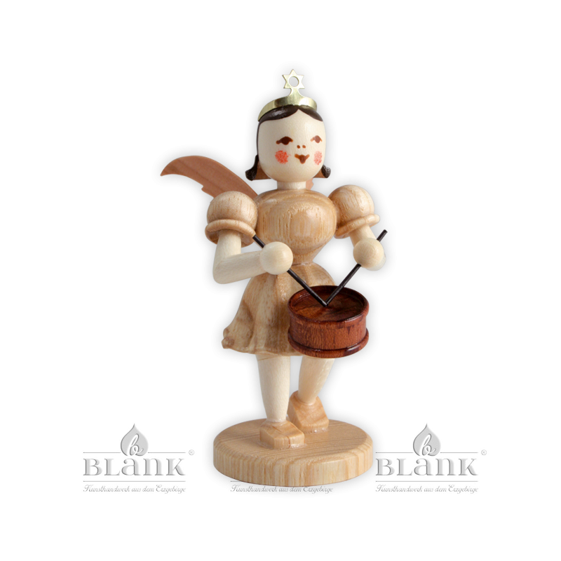 Dieser kleine Kurzrockengel mit dem einzigartigen Faltenröckchen von BLANK Kunsthandwerk spielt konzentriert auf seiner filigranen Violine. Er begleitet damit das große Engelorchester, das in aufwendiger Handarbeit in unserer Engelwerkstatt im Erzgebirge entsteht. Die naturfarbene Figur ist aus verschiedenen heimischen Hölzern hergestellt und wird in ca. 135 Arbeitsschritten mit viel Liebe zum Detail zusammengesetzt. Malerinnen verleihen dem Engel schließlich einen freundlichen Ausdruck, sodass er jeden allein, oder im Ensemble, verzaubern kann.
