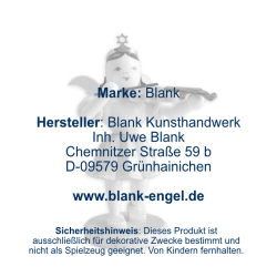 BLANK Kunsthandwerk ist ein traditionsreiches Familienunternehmen aus Grünhainichen im Erzgebirge, das seit 1955 filigrane Faltenrockengel und hochwertige Weihnachtsdekorationen herstellt. Neben Pyramiden, Schwibbögen, Nussknackern und Rauchfiguren werden auch Blumenkinder und Osterhasen in aufwendiger Handarbeit gefertigt. Dafür wurden die Produkte des Herstellers vom Verband Erzgebirgischer Kunsthandwerker und Spielzeughersteller e. V. mit dem Zertifikat "Echt Erzgebirge. Holzkunst mit Herz®" ausgezeichnet.