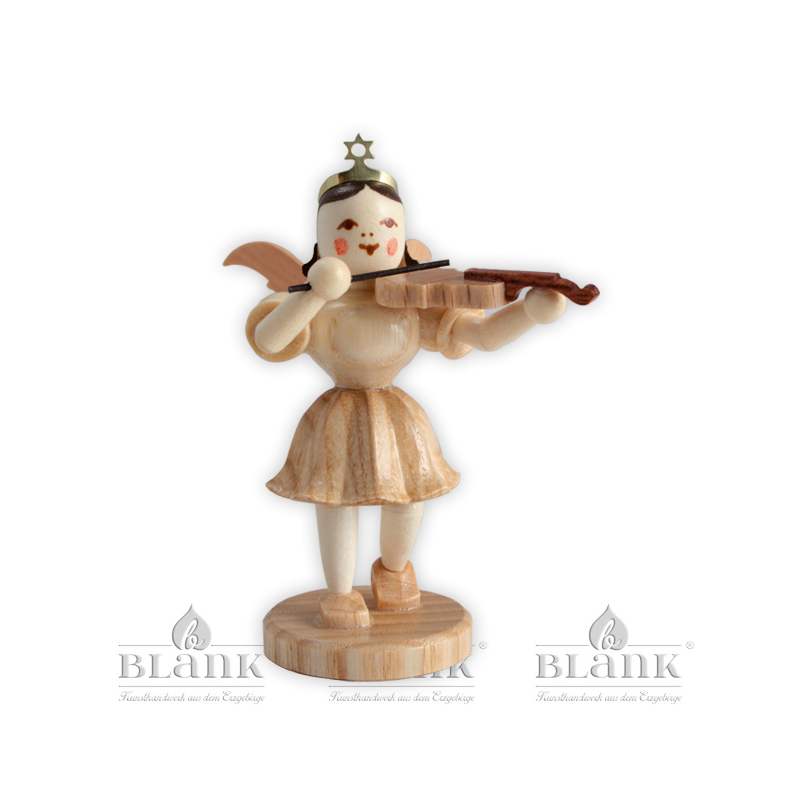 Dieser kleine Kurzrockengel mit dem einzigartigen Faltenröckchen von BLANK Kunsthandwerk spielt hingerissen auf einer filigranen Bratsche. Er begleitet damit das große Engelorchester, das in aufwendiger Handarbeit in unserer Engelwerkstatt im Erzgebirge entsteht. Die naturfarbene Figur ist aus verschiedenen heimischen Hölzern hergestellt und wird in ca. 135 Arbeitsschritten mit viel Liebe zum Detail zusammengesetzt. Malerinnen verleihen dem Engel schließlich einen freundlichen Ausdruck, sodass er jeden allein, oder im Ensemble, verzaubern kann.