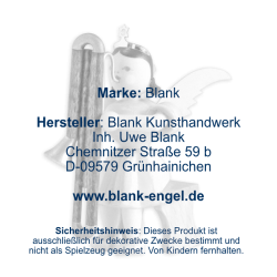 BLANK Kunsthandwerk ist ein traditionsreiches Familienunternehmen aus Grünhainichen im Erzgebirge, das seit 1955 filigrane Faltenrockengel und hochwertige Weihnachtsdekorationen herstellt.
