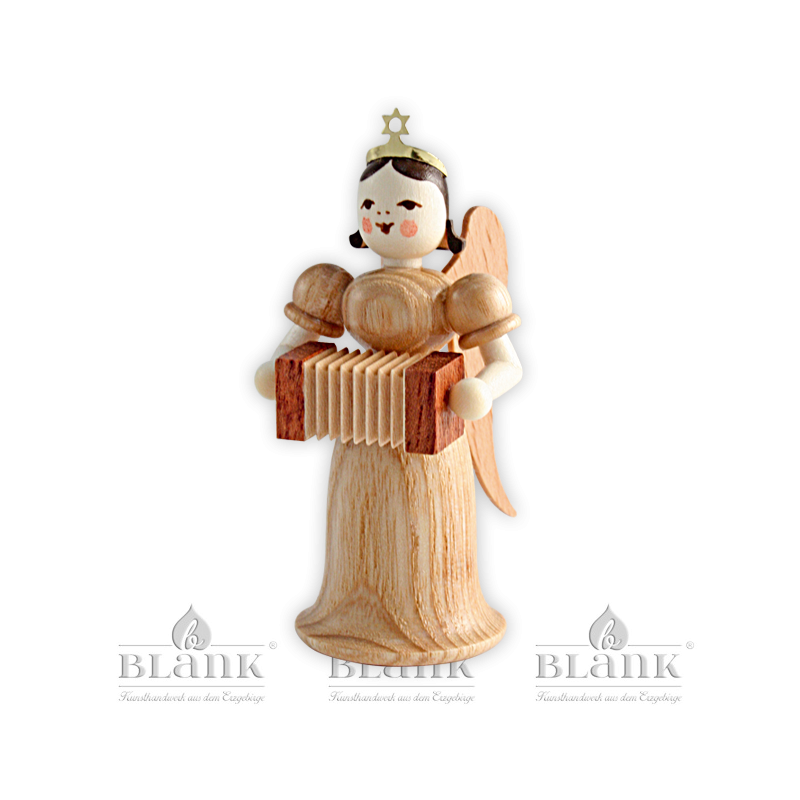 In seinem leicht geschwungenen, glockenförmigen Gewand aus Echtholz macht dieser Engel mit Harmonika stets eine gute Figur. Die optische Schlichtheit des Engels betont in besonderem Maße, wie einzigartig und schön das verwendete Material ist. Auf dem langen Kleid einer jeden Figur zeigen sich individuelle, verspielte Linen der Holzmaserung, die ihm im reizvollen Wechselspiel von hellen und dunklen Tönen Charakter verleihen. Der Langrockengel wird in aufwendiger Handarbeit in unserer Engelwerkstatt gefertigt. Malerinnen verleihen ihm ein liebliches Antlitz, sodass er mit Stolz Teil des großen Engelorchesters werden kann. Er ist ein zertifiziertes Original aus dem Erzgebirge "Echt Erzgebirge. Holzkunst mit Herz®"