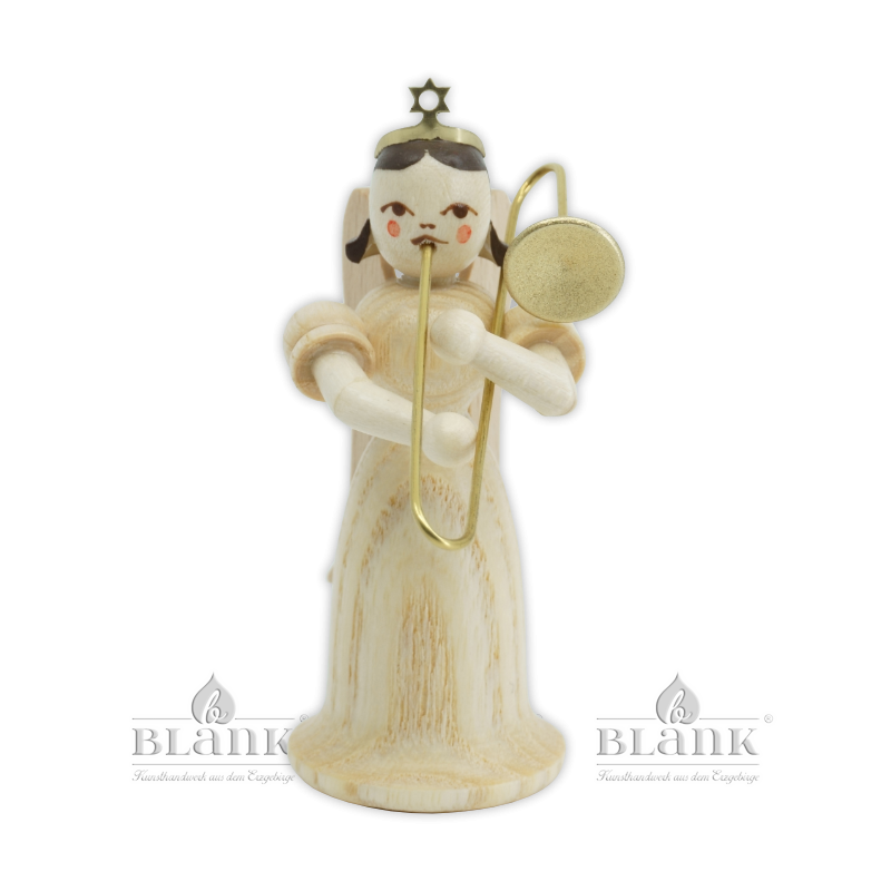 In seinem leicht geschwungenen, glockenförmigen Gewand aus Echtholz macht dieser Engel mit seiner goldenen Zugposaune stets eine gute Figur. Die optische Schlichtheit des Engels betont in besonderem Maße, wie einzigartig und schön das verwendete Material ist. Auf dem langen Kleid einer jeden Figur zeigen sich individuelle, verspielte Linen der Holzmaserung, die ihm im reizvollen Wechselspiel von hellen und dunklen Tönen Charakter verleihen. Der Langrockengel wird in aufwendiger Handarbeit in unserer Engelwerkstatt gefertigt. Malerinnen verleihen ihm ein liebliches Antlitz, sodass er mit Stolz Teil des großen Engelorchesters werden kann. Er ist ein zertifiziertes Original aus dem Erzgebirge "Echt Erzgebirge. Holzkunst mit Herz®"