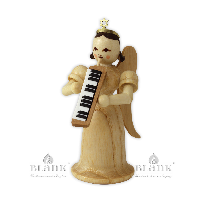 In seinem leicht geschwungenen, glockenförmigen Gewand aus Echtholz macht dieser Engel mit Melodica stets eine gute Figur. Die optische Schlichtheit des Engels betont in besonderem Maße, wie einzigartig und schön das verwendete Material ist. Auf dem langen Kleid einer jeden Figur zeigen sich individuelle, verspielte Linen der Holzmaserung, die ihm im reizvollen Wechselspiel von hellen und dunklen Tönen Charakter verleihen. Der Langrockengel wird in aufwendiger Handarbeit in unserer Engelwerkstatt gefertigt. Malerinnen verleihen ihm ein liebliches Antlitz, sodass er mit Stolz Teil des großen Engelorchesters werden kann. Er ist ein zertifiziertes Original aus dem Erzgebirge "Echt Erzgebirge. Holzkunst mit Herz®"
