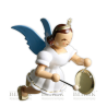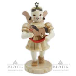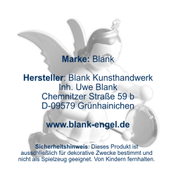 Freundlich blickt dieser kleine Schwebeengel von oben auf seine musizierenden Freunde hinab. Sicher befestigt an einem goldenen Bändchen begleitet er das große Engelorchster aus luftigen Höhen. Die farbige Figur mit kurzem Faltenröckchen spielt auf einer goldenen Zugposaune. Ob als Baumbehang, Geschenkanhänger, Wohnraumdekoration oder „kleines Mitbringsel“ - die schwebenden Faltenrockengel von BLANK sind echte Originale des erzgebirgischen Kunsthandwerks und werden jeden bezaubern. Die Figuren werden aus heimischen Hölzern vollständig von Hand gefertigt und begeistern durch ihre Einzigartigkeit.