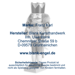Der "General von Beißer" ist nicht nur ein imposanter, schön gestalteter Nussknacker aus der erzgebirgischen Holzkunstwerkstatt BLANK in Grünhainichen, sondern auch ein Held aus dem Kinderbuch "Kathrinchen Zimtstern", in dem sich verschiedene bekannte Figuren der erzgebirgischen Weihnachtszeit auf eine spannende Reise durch die Länder dieser Erde machen, um Weihnachten zu retten. Daher hält der Nussknacker auch einen Brief in der Hand, der Teil der Geschichte ist. Die Figur wird aus heimischen Hölzern gefertigt, ist aufwendig bemalt und mit verschiedenen Materialien für Haare und Schnurrbart veredelt. Goldene Akzente an der Kleidung des Nussknackers und an der Krone machen den Genaral zu einem wahrlich majestätischen Beispiel seiner Zunft. "Echt Erzgebirge. Holzkunst mit Herz®"