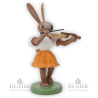 Diese musizierende Osterhasenfigur hat sich herausgeputzt um Ihnen ein Ständchen zu bringen. Sie trägt ein Faltenröckchen in frühlingsfrischem orange und hat sich ein rotes Tüchlein um den Hals gebunden. Nun ist sie ganz vertieft in ihr Violinenspiel. Lassen Sie sich von dieser kleinen Osterdekoration verzaubern, die in liebevoller Handarbeit in unsere Holzkunstwerkstatt in Grünhainichen ensteht.
