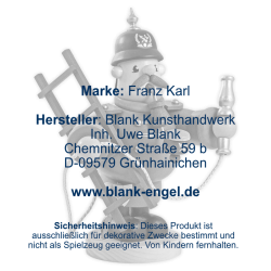 Vor langer, langer Zeit, als die Wälder noch viel größer und die Orte noch viel kleiner waren, gab es im Erzgebirge neben Moosmännchen und Wurzelzwergen auch das Volk der "Kleinen Pfeifenraucher". Sie heißen so, weil sie immer und überall ein Pfeifchen bei sich hatten, aus dem sie nicht etwa Tabak rauchten, sondern eine Mischung aus wohlriechenden Kräutern, deren Duft friedlich stimmte und Wohlbehagen verbreitete. Und auch heute nebeln sie dankbar jede Sorte von Räucherkerzchen, die man ihnen anbietet - ganz nach Ihrem Geschmack. Der Oberkörper der Figur lässt sich von den Beinen abnehmen, sodass man eine handelsübliche Räucherkerze auf die kleine Metallplatte im Inneren stellen kann. Nach Aufsetzen des Oberteils, raucht die Figur dann aus dem Mund. (Nicht unbeaufsichtigt lassen, kein Spielzeug.)