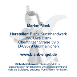 BLANK Kunsthandwerk ist ein traditionsreiches Familienunternehmen aus Grünhainichen im Erzgebirge, das seit 1955 filigrane Faltenrockengel und hochwertige Weihnachtsdekorationen herstellt. Neben Pyramiden, Schwibbögen, Nussknackern und Rauchfiguren werden auch Blumenkinder und Osterhasen in aufwendiger Handarbeit gefertigt. Dafür wurden die Produkte des Herstellers vom Verband Erzgebirgischer Kunsthandwerker und Spielzeughersteller e. V. mit dem Zertifikat "Echt Erzgebirge. Holzkunst mit Herz®" ausgezeichnet.