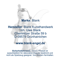 Freundlich blickt dieser kleine Schwebeengel von oben auf seine musizierenden Freunde hinab. Sicher befestigt an einem goldenen Bändchen begleitet er das große Engelorchster aus luftigen Höhen. Die farbige Figur mit kurzem Faltenröckchen spielt auf einer fein gearbeiteten Blockflöte. Ob als Baumbehang, Geschenkanhänger, Wohnraumdekoration oder „kleines Mitbringsel“ - die schwebenden Faltenrockengel von BLANK sind echte Originale des erzgebirgischen Kunsthandwerks und werden jeden bezaubern. Die Figuren werden aus heimischen Hölzern vollständig von Hand gefertigt und begeistern durch ihre Einzigartigkeit.
