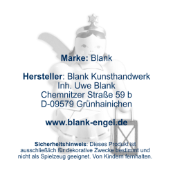 Freundlich blickt dieser kleine Schwebeengel von oben auf seine musizierenden Freunde hinab. Sicher befestigt an einem goldenen Bändchen begleitet er das große Engelorchster aus luftigen Höhen. Der Kurzrockengel bringt Ihnen einen Brief mit einer lieb gemeinten Nachricht, während er seinen Weg mit einer kleinen Laterne ausleuchtet. Ob als Baumbehang, Geschenkanhänger, Wohnraumdekoration oder „kleines Mitbringsel“ - die schwebenden Faltenrockengel von BLANK sind echte Originale des erzgebirgischen Kunsthandwerks und werden jeden bezaubern. Die Figuren werden aus heimischen Hölzern vollständig von Hand gefertigt und begeistern durch ihre Einzigartigkeit.