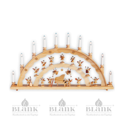 Zur Ausstattung dieses Schwibbogens gehören ein Faltenrockengel® am Flügel und zwei bezaubernde Schwebeengel mit Posaune, alle weiteren Figuren lassen sich nach Wunsch zusätzlich bestellen (sind nicht enthalten). So lässt sich dieser elegante Schwibbogen in eine Bühne für ein Orchester von Faltenrockengeln verwandeln. Der Schwibbogen gehört zu den Klassikern der adventlichen Handwerkskunst aus dem Erzgebirge. Unter dem beleuchteten Hauptbogen befindet sich ein kleinerer, auf dem neun Faltenrockengel Platz finden. Der Bogen verfügt über 10 elektrische Kerzen und kann mit Hilfe eines Schalters an und aus geschaltet werden. (falls nötig: passende LED-Birnen finden Sie bei den Ersatzteilen als "LED 23")