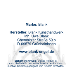 BLANK Kunsthandwerk ist ein traditionsreiches Familienunternehmen aus Grünhainichen im Erzgebirge, das seit 1955 filigrane Faltenrockengel und hochwertige Weihnachtsdekorationen herstellt. Neben Pyramiden, Schwibbögen, Nussknackern und Rauchfiguren werden auch Blumenkinder und Osterhasen in aufwendiger Handarbeit gefertigt. Dafür wurden die Produkte des Herstellers vom Verband Erzgebirgischer Kunsthandwerker und Spielzeughersteller e. V. mit dem Zertifikat "Echt Erzgebirge. Holzkunst mit Herz®" ausgezeichnet.