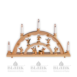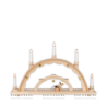 Ein kleiner, teils unbestückter, Schwibbogen aus Naturholz, mit dem Sie die Präsentationsfläche für Ihre Faltenrockengel erweitern können. Der Bogen ist mit einem Faltenrockengel an der Zither ausgestattet, der unter einem goldenen Stern an einem Tischlein musiziert. Gewölbte Kanten und weitere kleine Ziersterne verleihen diesem weihnachtlichen Fensterschmuck eine verspielte Optik. Neben und über dem Engel ist genug Platz für weitere 6 Figuren. Der Schwibbogen erleuchtet die Szene mit fünf elektrischen Kerzen, die mit einem Schalter ein oder aus geschaltet werden können. Dieser Schwibbogen aus dem Erzgebirge ist in der Advents- und Weihnachtszeit ein stimmungsvoller Schmuck für Ihr Fenster. (passende LED-Birnen finden Sie bei den Ersatzteilen als "LED 34")