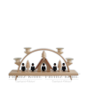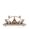 Dieser nostalgische Schwibbogen aus Naturholz wird in der Weihnachtszeit für besonders gemütliche Stimmung sorgen, denn er ist nicht elektrisch, sondern wird mit zwei Pyramidenkerzen bestückt. So wird die kleine Szene, die unter dem Holzbogen dargestellt ist in warmes Kerzenlicht gehüllt. Der zeitlose und formschöne Schwibbogen zeigt eine Kurrende mit Haus. Sie besteht aus fünf handbemalten Figuren der Marke FRANZ KARL und zwei Spanbäumen neben einer kleinen Kirche. Die handliche Größe des Bogens macht ihn zum perfekten Dekorationsstück auf Tisch und Regal. "Echt Erzgebirge. Holzkunst mit Herz®"