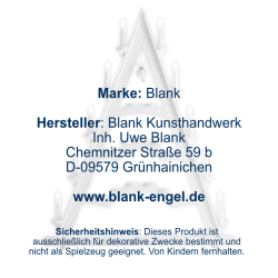BLANK Kunsthandwerk ist ein traditionsreiches Familienunternehmen aus Grünhainichen im Erzgebirge, das seit 1955 filigrane Faltenrockengel und hochwertige Weihnachtsdekorationen herstellt. Neben Pyramiden, Schwibbögen, Nussknackern und Rauchfiguren werden auch Blumenkinder und Osterhasen in aufwendiger Handarbeit gefertigt. Dafür wurden die Produkte des Herstellers vom Verband Erzgebirgischer Kunsthandwerker und Spielzeughersteller e. V. mit dem Zertifikat "Echt Erzgebirge. Holzkunst mit Herz®" ausgezeichnet.