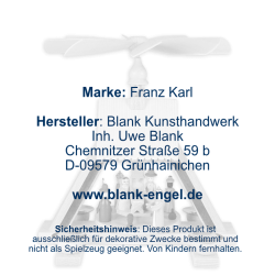Durch die aufsteigende Wärme von vier Kerzen wird das Flügelrad dieser Pyramide angetrieben, was den Drehteller in Bewegung versetzt. Darauf befinden sich sieben handgearbeitete und liebevoll bemalte Krippenfiguren - die heilige Familie, die drei Weisen und ein Schäfer. Die Szene ist farblich so gestaltet, dass sie sich gut von der naturfarbenen Pyramide abhebt und einen stimmigen Kontrast zwischen bemaltem und unbemaltem Holz bildet. Über der Figurengruppe leuchtet ein goldener Stern. Die Weihnachtspyramide der Marke FRANZ KARL entsteht in unserer Werkstatt in Grünhainichen und ist ein zertfiziertes Original aus dem Erzgebirge.