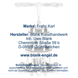 Um den Mittelpunkt dieser erzgebirgischen Weihnachtspyramide dreht sich eine umfangreiche Krippenszene auf zwei Etagen. In der unteren Etage ist die heilige Familie von den drei Königen und einem Eselshirten umringt. Darüber hüten Schäfer ihre kleinen, aber aufwendig gefertigten Tiere. Die gesamte Szene wird von drei Englein überwacht, die aus der Empore das Weihnachtswunder verkünden. Alle Figuren entstehen in liebevoller Handarbeit in unserer Werkstatt in Grünhainichen, bevor sie dann ihren festen Platz zwischen den gedrechselten Säulen dieser Pyramide finden. Die Pyramide ist vorrangig in Naturholzoptik gehalten, zum Teil in dezenten Brauntönen gebeizt und mit goldenen Akzenten abgesetzt. Sie wird mit handelsüblichen Pyramidenkerzen betrieben. Die Pyramide wird von BLANK Kunsthandwerk unter der Marke FRANZ KARL hergestellt.
