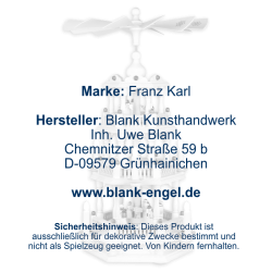 BLANK Kunsthandwerk ist ein traditionsreiches Familienunternehmen aus Grünhainichen im Erzgebirge, das seit 1955 filigrane Faltenrockengel und hochwertige Weihnachtsdekorationen herstellt. Neben Pyramiden, Schwibbögen, Nussknackern und Rauchfiguren werden auch Blumenkinder und Osterhasen in aufwendiger Handarbeit gefertigt. Dafür wurden die Produkte des Herstellers vom Verband Erzgebirgischer Kunsthandwerker und Spielzeughersteller e. V. mit dem Zertifikat "Echt Erzgebirge. Holzkunst mit Herz®" ausgezeichnet.