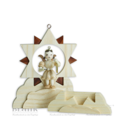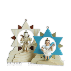 Für unsere ca. 10 cm großen Engel im Stern, die man als Fensterschmuck oder Christbaumanhänger aufhängen kann, haben wir nun Sternenhalterungen designed, die es ermöglichen, die Engel im Stern auch als Tischschmuck aufzustellen. Sie werden im Set angeboten und beinhalten zwei verschiedene Größen, die vielfältige Dekorationsmöglichkeiten bieten. Kombinieren Sie doch auch einmal farbige Wolken mit naturfarbenen Engeln, oder umgekehrt. So lassen sich reizvolle Farbakzente setzen.