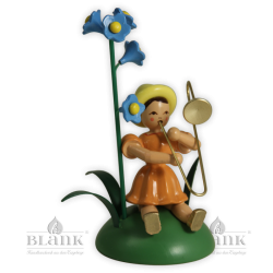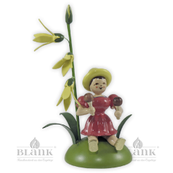 These sitting figurines hold delicate spring flowers or fruits of autumn, similar to our other Flower Children. Additionally, they play filigree instruments and are the highlight of any decoration. The base of these completely handmade and painted Flower Children can also be used as a card holder. A great gift!