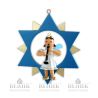 This handpainted little Angel with Pleated Skirt and golden diadem is sitting on a wooden star propably playing lovely melodies on its hand-painted clarinet. The joy is written on his face. The artwork was handcrafted in our angel workshop and was also allover decorated by hand. The star has a metal eyelet at the top so that it could be hung with a ribbon. The various details of the lovely Angel in a Star are elaborately designed. Decorate your Christmas tree with this fine artwork from the German Erzgebirge or decorate your window. You will just love it.
