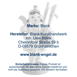 The angel with bagpipes plays an extraordinary and lavishly designed wooden instrument with a turned airbag, three pipes and an authentic playing tube. Like the hand-painted angel with short pleated skirt itself, it is entirely made by hand and is also decorated with a small gold tassel. The figure with the typical pleated skirt is madein our workshops in Gruenhainichen from local wood and is a certified quality product from BLANK Kunsthandwerk. "Echt Erzgebirge. Holzkunst mit Herz®" ("Original from the Erzgebirge. Wooden Art with Soul®")