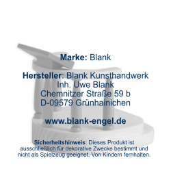 BLANK Kunsthandwerk is a traditional family business from Grünhainichen in the German Erzgebirge, which has been producing filigree angels with pleated skirts and high-quality Christmas decorations since 1955. In addition to pyramids, candle arches, nutcrackers and smoke figures, flower children and Easter bunnies are also elaborately handcrafted. For this purpose, the manufacturer's products have been approved by the Association of Erzgebirgischer Kunsthandwerker und Spielzeughersteller e. V. and awarded with the certificate "Echt Erzgebirge. Holzkunst mit Herz®".