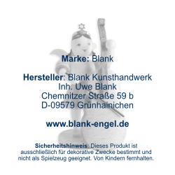 BLANK Kunsthandwerk is a traditional family business from Grünhainichen in the German Erzgebirge, which has been producing filigree angels with pleated skirts and high-quality Christmas decorations since 1955. In addition to pyramids, candle arches, nutcrackers and smoke figures, flower children and Easter bunnies are also elaborately handcrafted. For this purpose, the manufacturer's products have been approved by the Association of Erzgebirgischer Kunsthandwerker und Spielzeughersteller e. V. and awarded with the certificate "Echt Erzgebirge. Holzkunst mit Herz®".