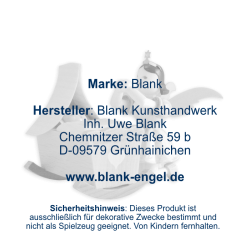 BLANK Kunsthandwerk is a traditional family business from Grünhainichen in the German Erzgebirge, which has been producing filigree angels with pleated skirts and high-quality Christmas decorations since 1955. In addition to pyramids, candle arches, nutcrackers and smoke figures, flower children and Easter bunnies are also elaborately handcrafted. For this purpose, the manufacturer's products have been approved by the Association of Erzgebirgischer Kunsthandwerker und Spielzeughersteller e. V. and awarded with the certificate "Echt Erzgebirge. Holzkunst mit Herz®".